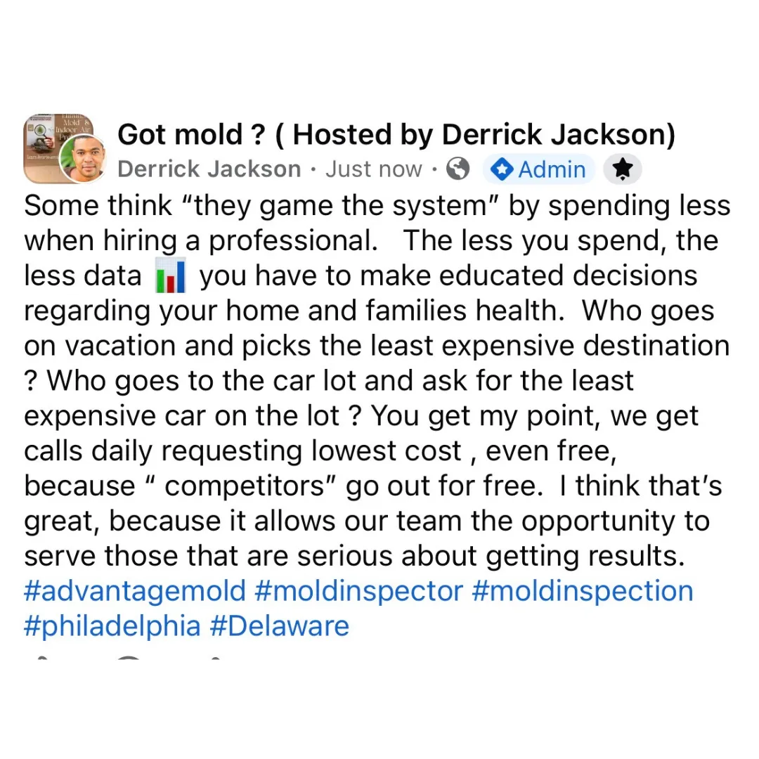 Our goal is to provide a healthy home experience for Property Owner owners. What this means is, we have the ability to test for radon, water quality, test the fresh air levels in your home to make sure that it does not exceed 1000 PPM. And most important we have the experience and devices to determine the seven health and safety performance levels of your existing HVAC system. We also evaluate the HVAC system and distribution system for hidden mode, problems and contaminants. We use a 3rd party accredited lab, never our personal opinion. We also have the resources to document , create containments, asbestos testing, replace drywall that is removed , and so much more.